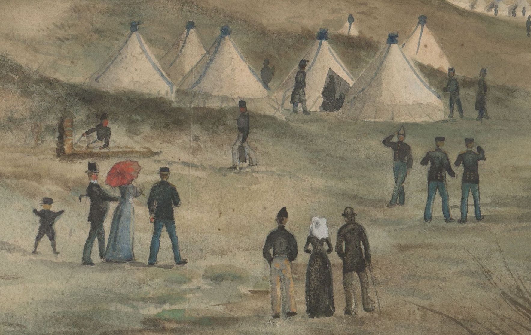 Aquarel uit 1891: militair kampement in de duinen van Voorne