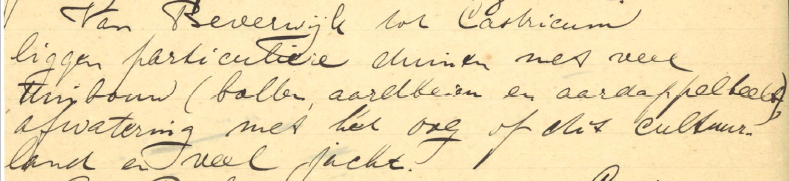 Van Beverwijk tot castricum liggen particuliere duinen met veel tuinbouw (bollen , aardbeien en aardappelteelt), afwatering met het oog op wit cultuurland en veel jacht.