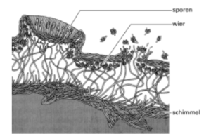 Alhoewel er veel verschillende korstmossen zijn met elk hun eigen schimmel (mycobiont) is de opbouw van de korstmos redelijk hetzelfde. De schimmelcomponent behoort tot de familie van de zakjesdragers (Ascomyceten) , sporen groeien in zakjes, en worden als ze rijp zijn uitgestoten. Van de ruim 3000 bekende ascomyceten vormen de helft ongeveer lichenen. Korstmossen hebben geen stengels en bladeren, we noemen de structuur thallus. Het thallus bestaat aan de onderzijde uit een dikke laag van schimmeldraden. Dit noemen we de korst of ondercortex . Deze korst groeit aan het substraat, zoals bomen of stenen, vast. Soms zijn hier kleine worteltjes aanwezig (rhizinen) om het korstmos stevig aan de ondergrond te verankeren. Boven op de ondercortex zitten de schimmeldraden met hiertussen de fotobionten zoals algen of bacterieën. De schimmel  produceert stoffen om de de schimmeldraden waterafstotend te maken waardoor de algcellen gemakkelijk gassen uit kunnen wisselen. Bovenop zit dan de bovencortex, deze is meer open van structuur. In de thallus  worden de verschillende voortplantingsorganen gevormd.