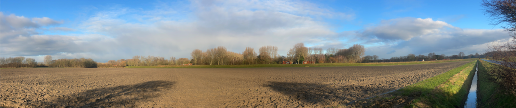 De streep in de verte met bomen en huizen erachter is de Nieuwendijk op Goeree, een inlaagdijk uit 1727 gemaakt van zand, met de hand opgeworpen. Foto Rolf Roos.