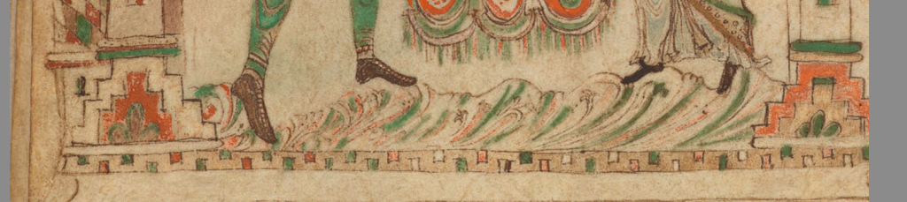 In het Rijksmuseum van Oudheden (RMO) in Leiden is het jaar 1000 te zien (tot 17 maart 2024). Topstuk is een Evangelieboek uit ca 860, het zgn. Evangeliarum van Egmond. In een kleine vitrine ligt het opengeslagen op twee ‘sponsorpagina’s’ die zijn toegevoegd in ca 975. Zien we onderaan links een duinlandschap? Oproep: wie kent er meer ‘duinmotieven’ uit de middeleeuwen?