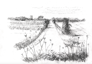 Gezicht op toren Goedereede vanaf Nieuwendijk over de Galgeweg. Beeld: Dirck Nab, in ERF (2025)