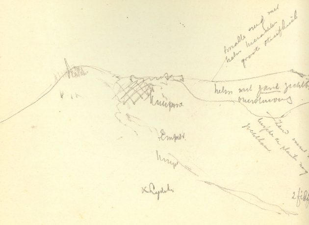 De aantasting van de duinen door de Duitsers voor de Atlantik Wall. Hij maakt zich daarover nog geen zorgen. Direkt na den oorlog flink aanpakken en dan maken we er één groot reservaat van van de Belgische kust tot Rottum.