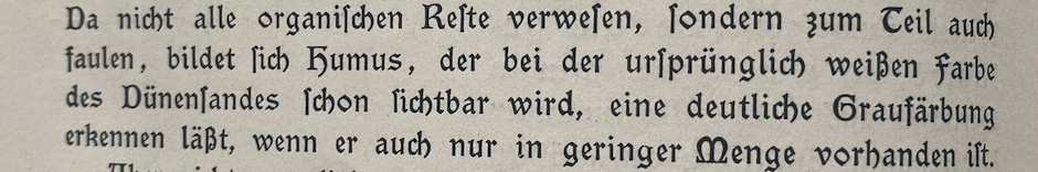 Maar op pag 222, meldt botanicus prof. dr.P. Graebner, dat dat grijs niet slaat op de begroeiing maar op de kleur van het zand eronder, dat door geleidelijke humusvorming haar witheid verliest:
