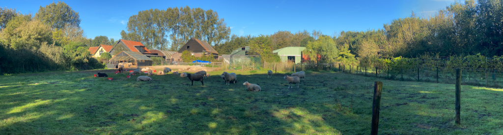 We staan op het verkeerde moment achter de stallen naar het huiskavel onder de duinrand te kijken. Fel tegenlicht. “Je moet hier vroeg op de ochtend komen,” zegt Jan van de Linde, “als de mist boven het land hangt.” We maken ons er een voorstelling van, zo’n gouden ochtend in april. Zingende merels, koerende duiven, aan de slootkant schieten winterkoninkjes heen en weer.