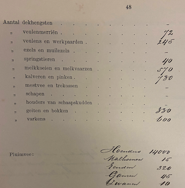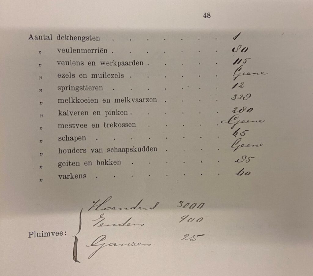 Help ons aan meer beeld of aan cijfers. Wie weet uit landbouwarchieven, overlevering in de familie of beeld hoeveel beesten er echt waren? Zie hieronder de brief van van Hoey Smith die om aanvulling vraagt! Zie aanvullingen aan het eind! Hieronder een recente vondst.