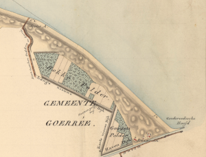 1874 Strekdammen zeeduinen; boerderij later van Moosje Hoek  ligt in ‘Het Kleine Plaatje’ met inlaagdijken 1717
