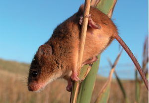 Dwergmuis is een zeer goede klimmer en maakt nestjes in hoge, ruigere vegetaties en riet. Foto wikimedia