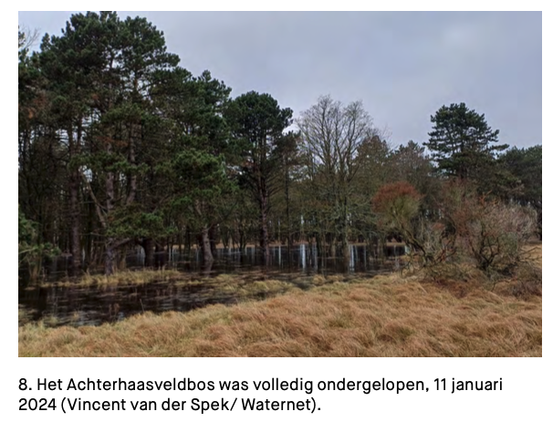 Zijn de unieke omstandigheden van 2024 een exponent van steeds extremer weer? Zo waren 2018 en 2022 nog de droogste voorjaren van de eeuw, was 2023 het natste voor- jaar ooit gemeten, terwijl de vroege zomer van datzelfde jaar de langst aaneengesloten droge periode ooit kende. Het extremere weer is zowel voor waterproductie als natuurbeheer een uitdaging. De vraag is of lange, zeer natte perioden als in 2023/2024 in het licht van klimaatverandering normaler gaan worden, of dat dit een uitzondering was omdat ook de warme golfstroom El Niño een rol speelde. Het is een feit dat de hoeveelheid neer- slag over het jaar heen en die van in de winters over de tijd is toegenomen. Zeker is in elk geval dat er in 2024 voor het duin unieke omstandigheden zijn ontstaan.