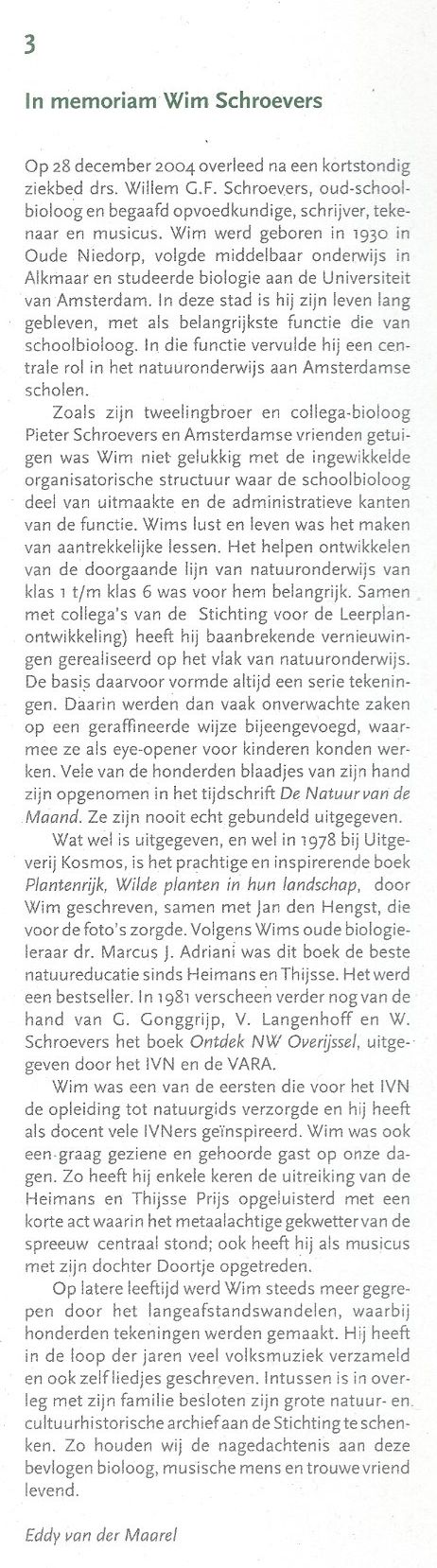 Hier een In Memoriam Wim Schroevers, overgenomen uit Nieuwsbrief Heimans en Thijssestichting nr. 28-3 (2005)