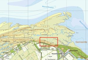 Bij mij viel het muntje toen ik de locatie van de kleine ‘ringburcht’ vergeleek met de topografische kaart van ca 1950. Precies op die plek ligt een een klein rond water. Dat is alleen te interpreteren als een koeienpit, een plek waar vee werd gedrenkt. Maar toch net iets anders. Normaal graaf je een kuil in de grond en heb je zoet water. Maar dat werkt niet op het zoute gors. Er is een ronde wal omheen gelegd in de hoop dat regenwater er in kon worden bewaard. Of begin met een ophoging waarin een kuil werd uitgespaard? Was het niet een kleine stelle, een kleine opgeworpen (vlucht)heuvel in onbedijkt gebied? Met een wateropvang er in en dan hollestelle geheten? Een ringwal tegen vloedwater om een koeienpit? Maar wie helpt me nu aan een goede verklaring van de openingen? In 1943 (luchtfot0) was de hollestelle nog puntgaaf, in 1970 niet meer. Onderaan een detail van de luchtfoto uit 1943 met een gave wal om deze hier waarschijnlijk reeds lang voor de oorlog aangelegde, hollestelle. En wat zegt de luchtfoto 1970 hieronder over recenter gebruik? Staat er op de luchtfoto niet een rond vat voor water in het midden? Het is een getuige uit de tijd (vanaf eind 19e eeuw) dat er wel al vee (koeien en paarden) rondliep, maar niet zoals nu, er een bak met schoon leidingwater voor de koeien aan de duinvoet klaar staat. Het begin hangt samen met de gorsvorming en beweiding eind 19e eeuw. Het einde hangt samen met de beschikbaarheid van een waterleiding.