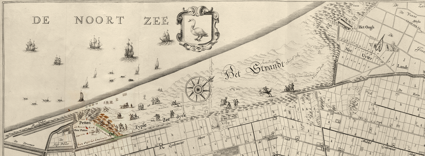Kaart Zoutman 1665 met in pen aanvullingen 1722, Noordhollands Archief