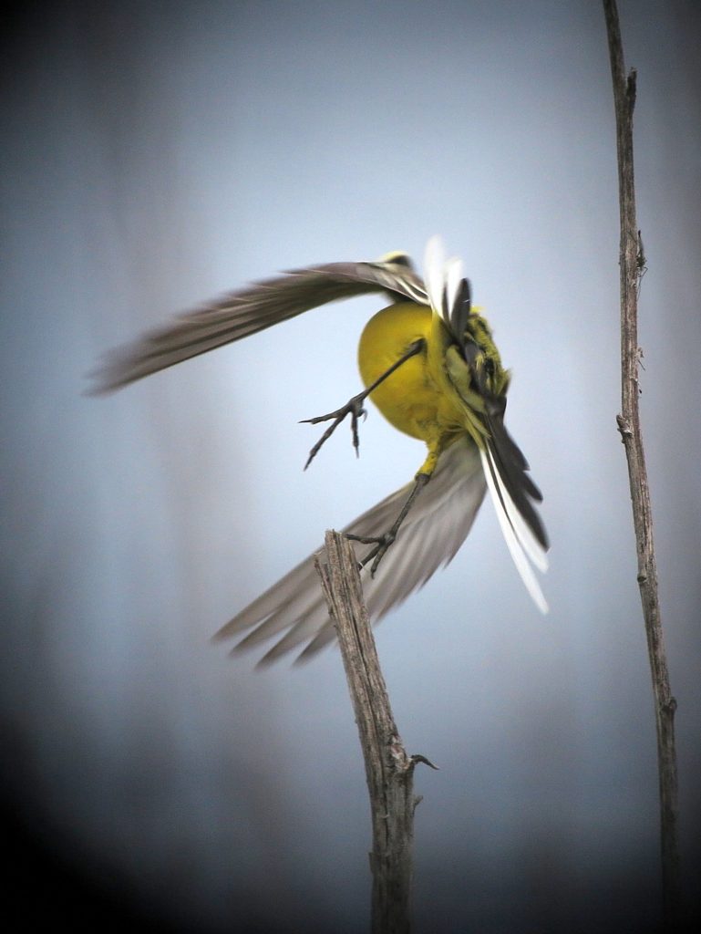 Het mooiste is als je je eigen ontdekkingen kunt doen. Nou, jouw dag kan niet meer stuk! Dat zei mijn vrouw nadat ik in de Sluftervlakte ineens een groep van twintig strandleeuweriken gewaar werd. Ze hebben een opvallende geel met zwart gekleurde kop met aan twee kanten wat omhoog staande veertjes, de zo genaamde hoorntjes. Geen onopvallende vogel, zou je zeggen. En meestal in een groepje. Dus die zie je niet over het hoofd, dacht je. Verrassing: ze vliegen een beetje op en verdwijnen weer. Verdwijnen waarin? Dat blijft onduidelijk. Wie de Slufter kent, die weet dat het daar redelijk kaal is. Het zoute zeewater kan in principe overal komen en daarom is er alleen kweldervegetatie. Lamsoor en zeekraal en andere brakwatersoorten. De strandleeuweriken gaan daar helemaal in op. Zonder verrekijker had ik ze niet teruggevonden, vermoed ik, ook al waren ze helemaal niet zo heel ver weg. Het is op een leuke manier vervreemdend om te zien hoe vogels gebruik maken van hun omgeving als ze zich willen verbergen voor gevaar. Ineens zijn ze foetsie. Ik heb ook al een paar keer meegemaakt dat gele kwikstaarten weg kruipen achter een kluit met bloeiende boter- of paardenbloemen. Handig, want opvliegen verraadt je positie en kost energie.