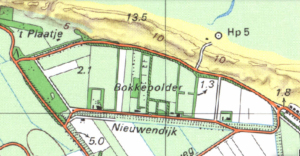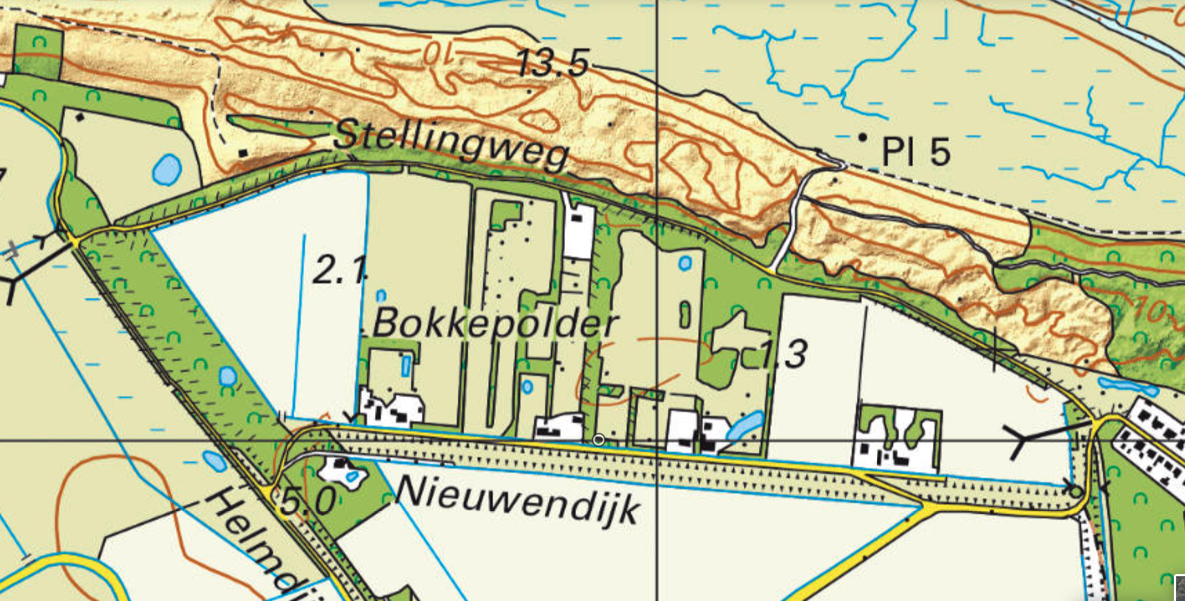 Luchtfoto 1944 met vergaven Helmdijk en loopgraven etc