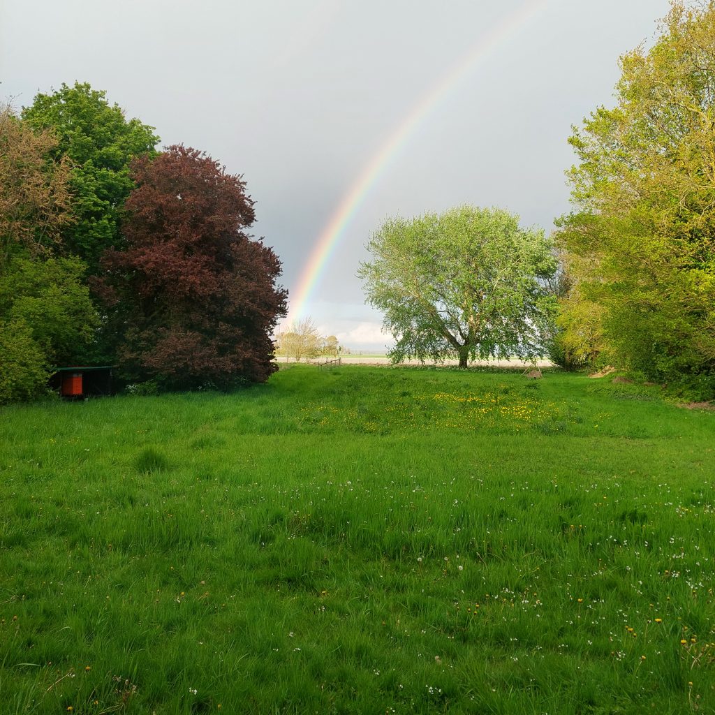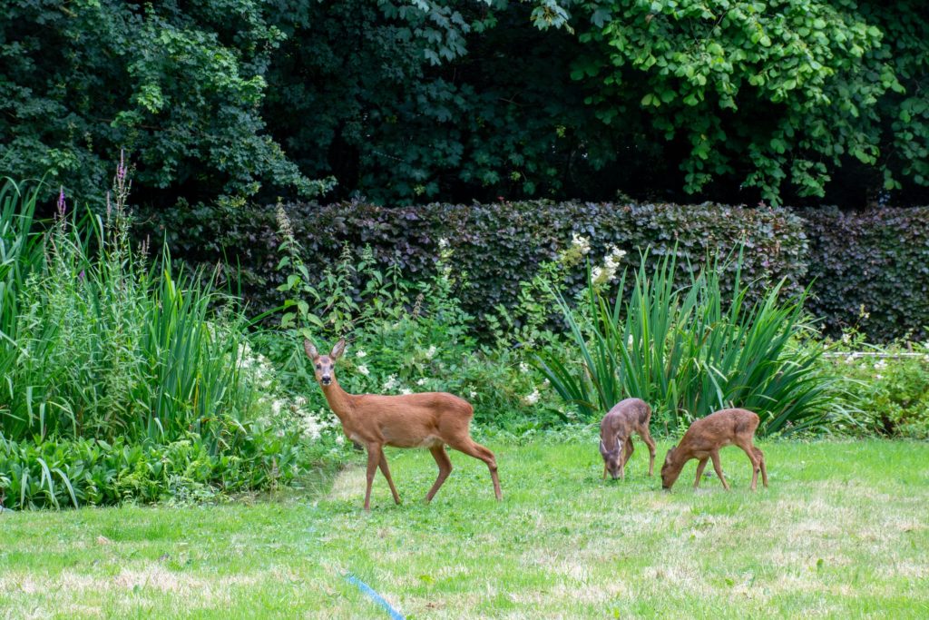 Natuur weet zich overal in dit landschap te nestelen. Jaarlijks komt er een ree afkalven en blijft dan maanden eten zoeken, en zo moest de moestuin met kastanjehout worden afgehekt tegen reeënvraat.