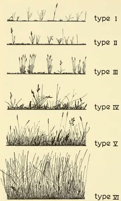 Van de lente naar de zomer migreren de sprinkhanen van minder dichte naar dichtere vegetatie. De nimfen van M. maculatus en C. biguttulus komen uit in open vegetatietypen (I en II) migreren vanwege te weinig beschutting vooral naar type V. Later keren de bevruchte vrouwtjes naar type I en II om hun eitjes te leggen. Nimfen van C. albomarginatus, uitgekomen in type III en IV, verlaten deze vegetatie, waarna de soort toeneemt in type VI (Lensink 1963).